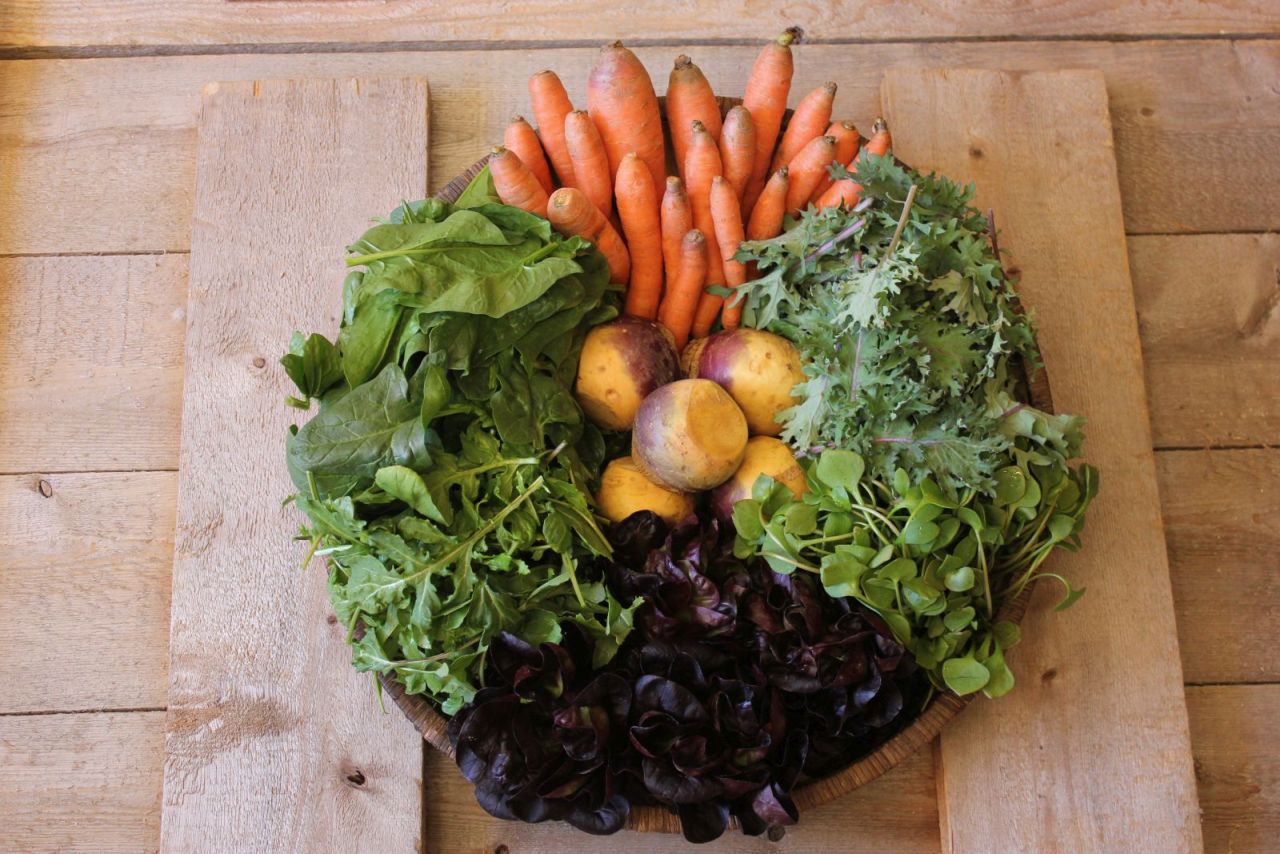 You can eat great vegetables, local and organic vegetables, vegetables that are grown right here on YOUR farm year round!
