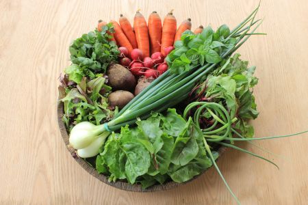 - 6 twice-monthly boxes of fresh vegetables, April-June (see below)
