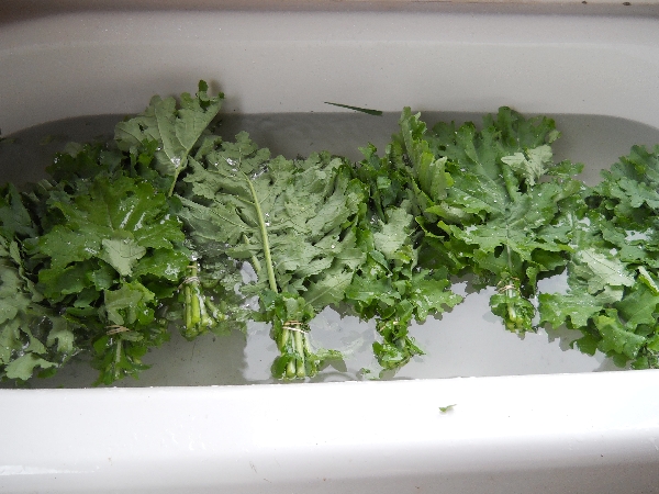 We put 2 bunches of fresh harvested kale in our fridge. The first bunch was in a plastic bag completely covering the greens. The second bunch was not in a plastic bag. It was simply placed on the shelf in our fridge. 24 hours later, can you guess which one looked fresher?